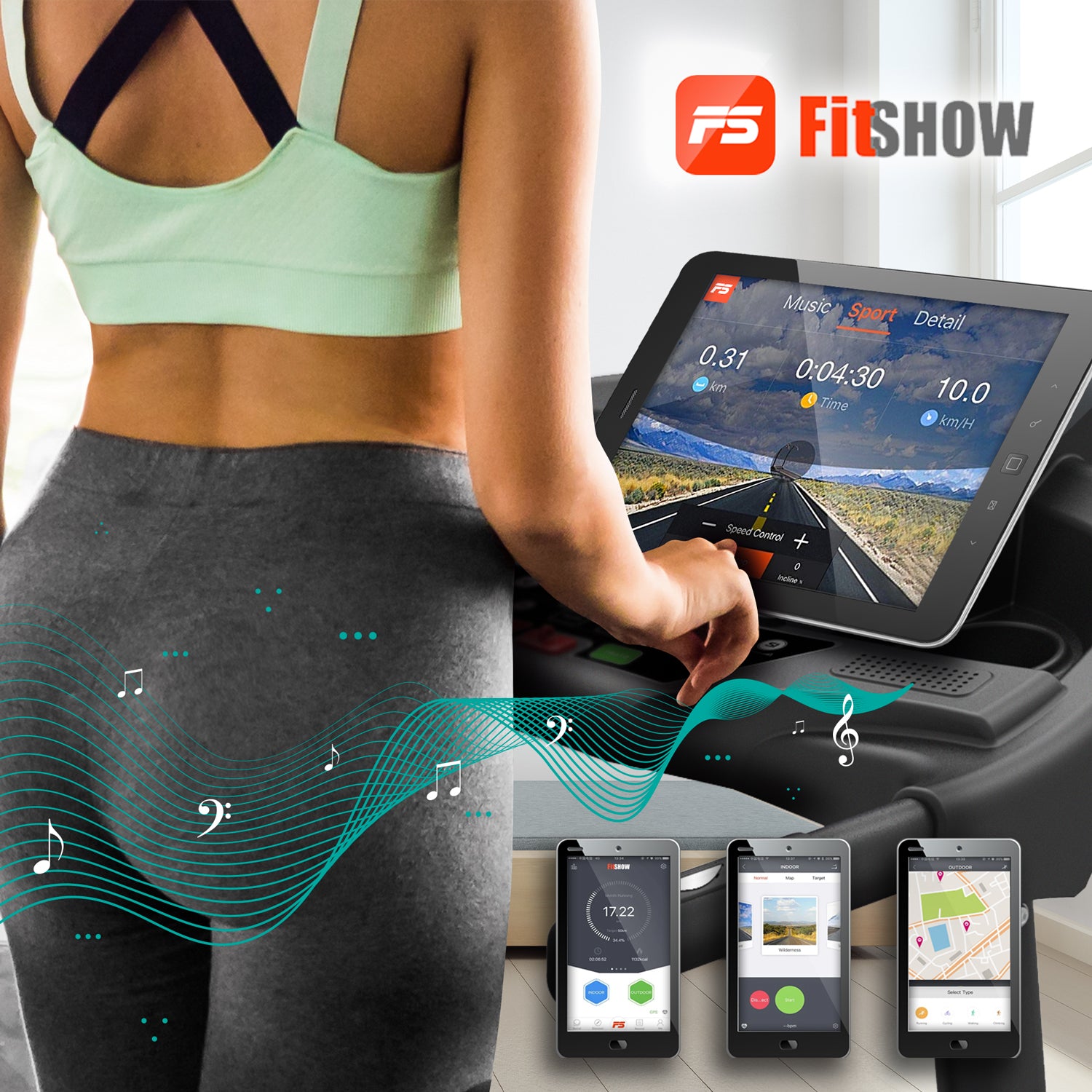 Bluetooth compatibile con APP dedicate (KINOMAP, ZWIFT, etc.) per allenamento online, interattivo, multiplayer, training, video coaching, streaming e molto altro. Con altoparlanti integrati e ingresso audio. Dotato di display multifunzione digitale LCD con tasti di scelta rapida per velocità e inclinazione e supporto per tablet e smartphone. Chiave di sicurezza inclusa.