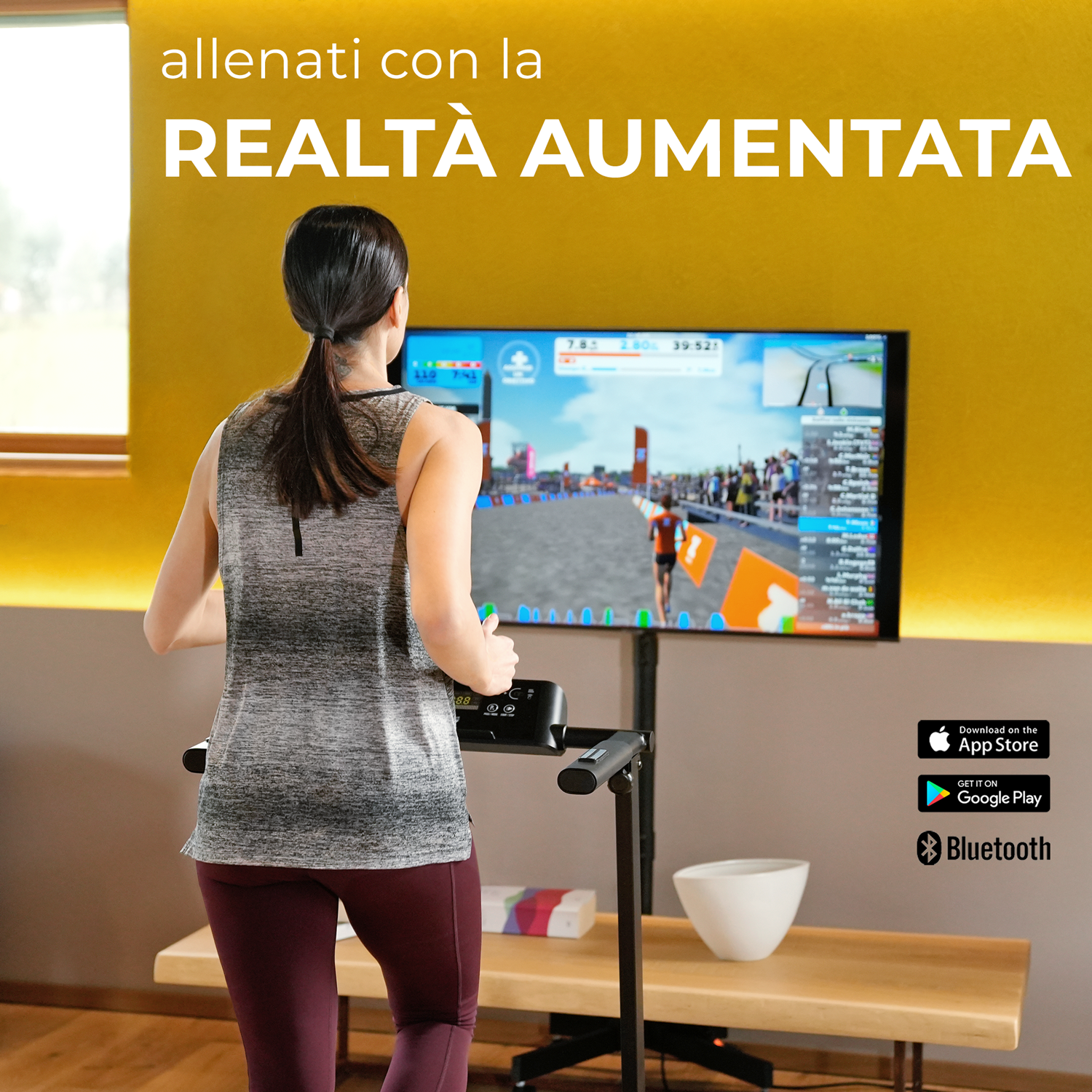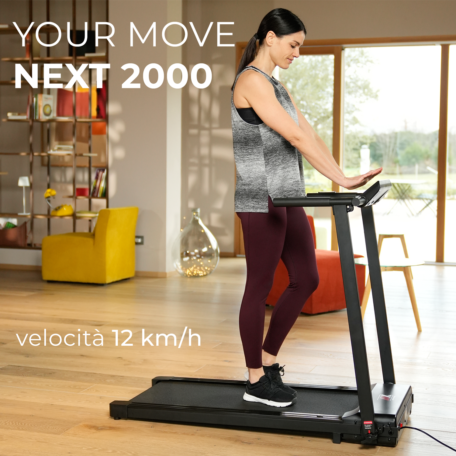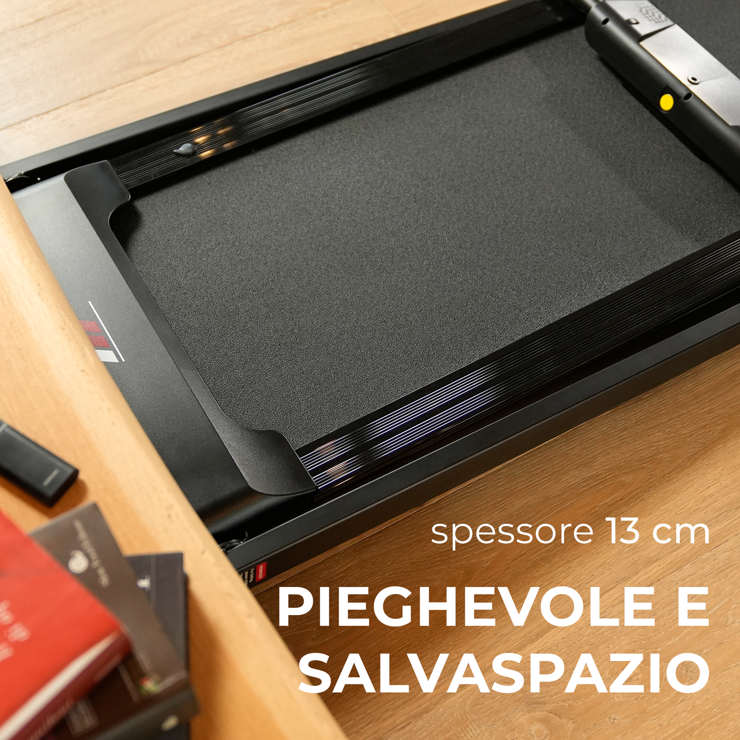 Leggero, facile da movimentare, si apre e chiude in pochi istanti. Incredibilmente compatto, da chiuso occupa solo 13 cm di spessore, perfetto per essere riposto anche negli spazi più stretti (con rotelline per il trasporto). Display e maniglie sono completamente pieghevoli, per un effetto ultra-piatto. Nastro multistrato, più resistente ed ammortizzante, regolabile e sostituibile, per un utilizzo prolungato nel tempo. Disponibili 4 programmi fissi di allenamento preimpostati e programmi regolabili tramite le APP. Superficie di corsa extra large 42 cm per il massimo comfort.