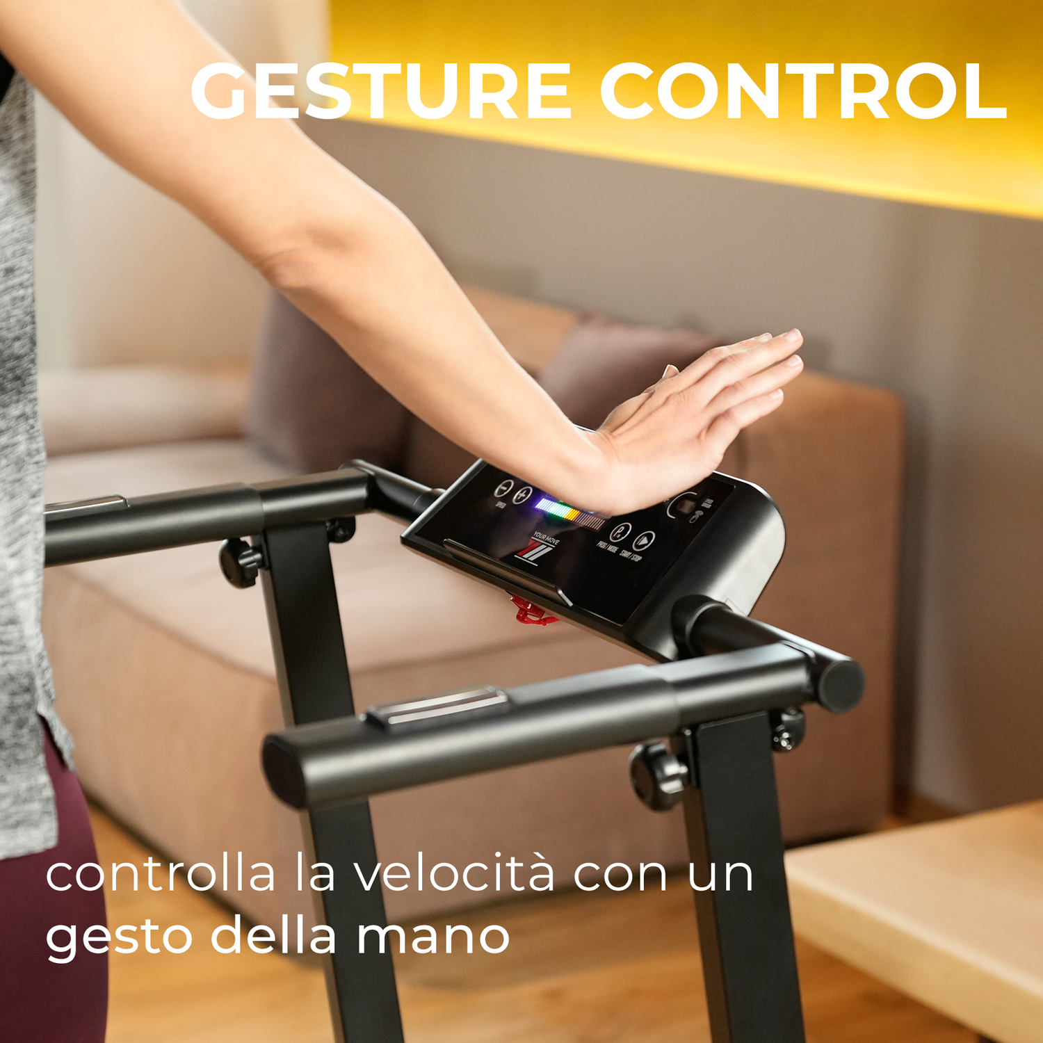 YM Next 2000 è il tapis roulant di prossima generazione dotato di un DOPPIO SISTEMA DI CONTROLLO: tramite tasti sul display oppure tramite l’innovativo sistema GESTURE CONTROL (Patent Pending) che ti permette di controllare il tuo tapis roulant con i gesti delle mani, anche senza premere i pulsanti.